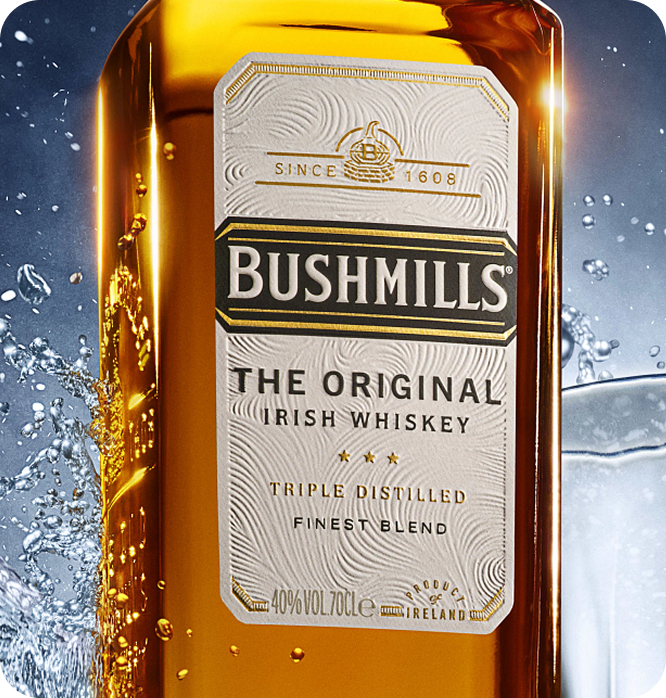 Produzido na destilaria licenciada mais antiga do mundo, na Irlanda do Norte, Bushmills nasce da combinação de três ingredientes simples: água pura do Rio Bush, cevada e tempo. Muito tempo.
